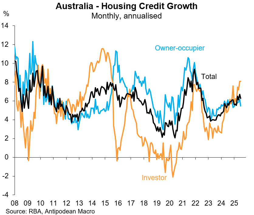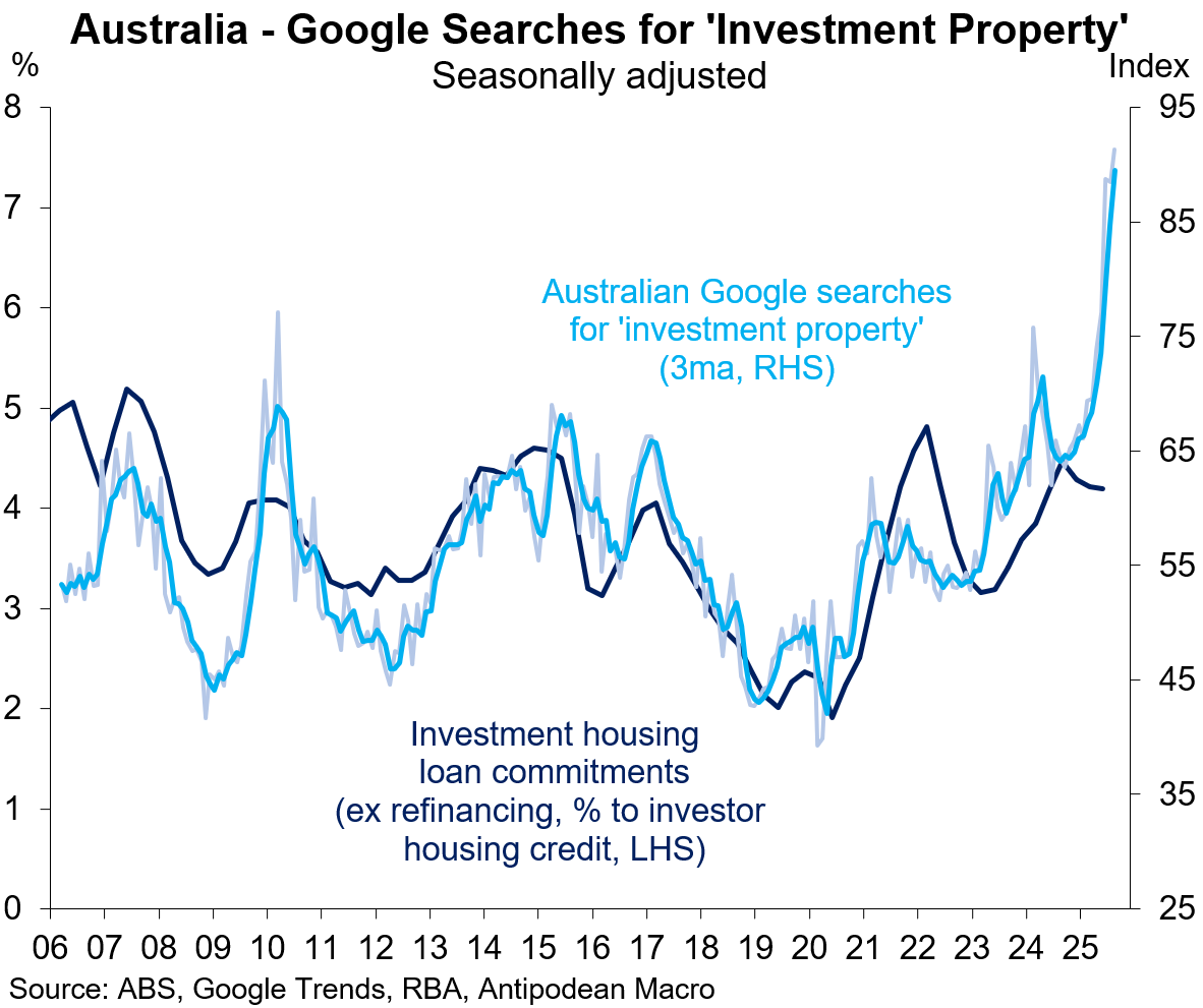 The pick-up in investor housing credit growth - the fastest since 2015 - suggests that investors anticipate a period of strong housing price growth ahead. Google search activity related to investment property buying has skyrocketed.