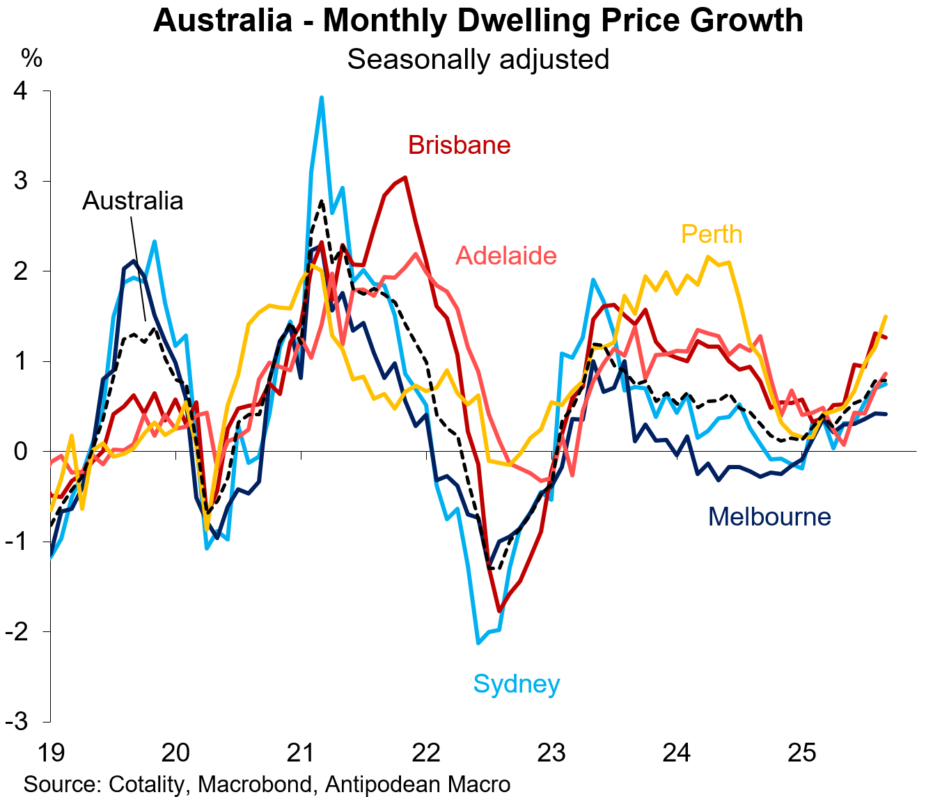 Monthly dwelling price growth strengthened again over September, with prices rising across all capital cities and broad regional areas. Price growth in Melbourne remained a laggard.