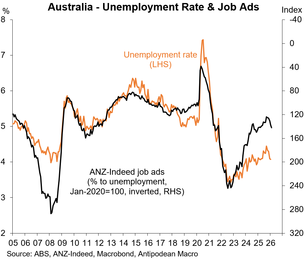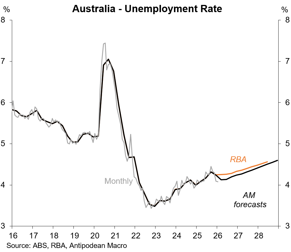 Labour market conditions remain relatively tight, though we expect part of the recent decline in the jobless rate to unwind in coming months.